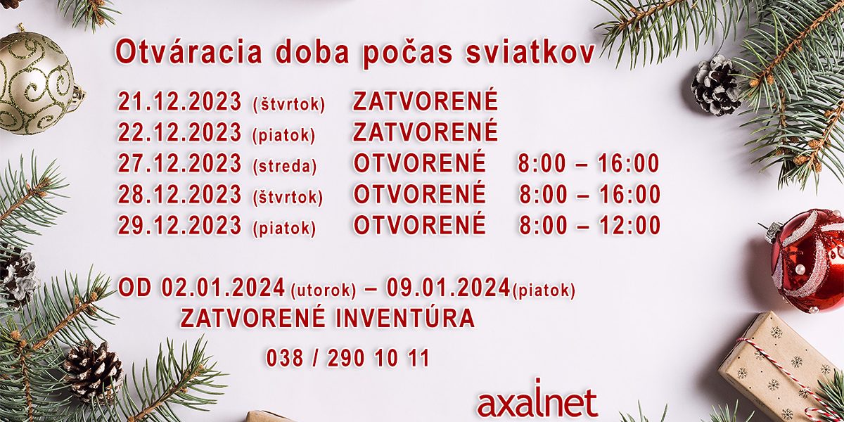 dec62023OznamyCategory: OznamyBy axadmin6. decembra 2023Post navigationPreviousPrevious post:Letné zatvorenie prevádzkyNextNext post:Výpadok internetu a TV – 20. 07. 2024 (Sobota)Related PostsZmena DPH od 1. 1. 20256. decembra 2024Otváracia doba počas sviatkov 20246. decembra 2024Výpadok internetu a TV – 20. 07. 2024 (Sobota)19. júla 2024Letné zatvorenie prevádzky23. júna 2023Výpadok internetu – 29.5.202329. mája 2023Otváracia doba počas sviatkov 20228. decembra 2022